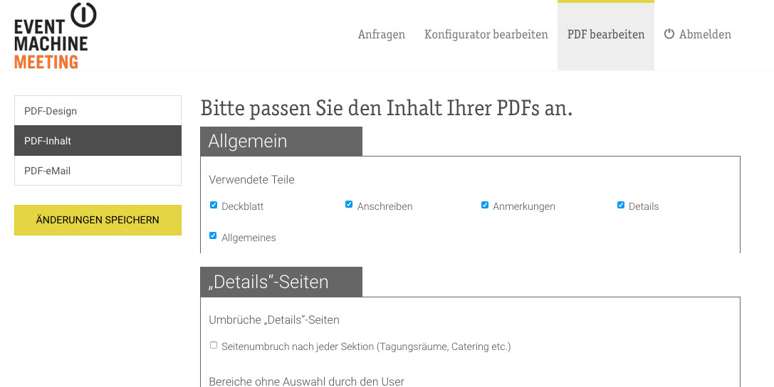 Wo? Verwaltungstool > Konfigurator bzw. PDF bearbeiten